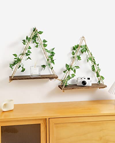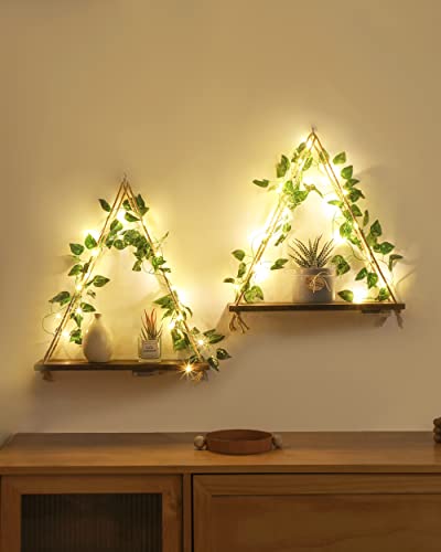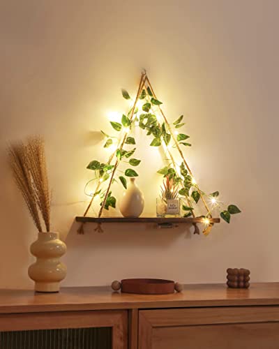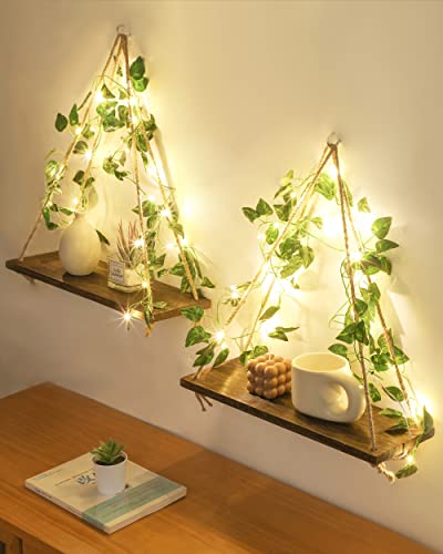 ZORCOR - ارفف معلقة على الحائط مع شريط LED، رف نباتات بوهو لديكور المنزل، ديكور مكرامي جمالي لبيت المزرعة مع اللبلاب الصناعي لغرفة المعيشة والحمام وغرفة النوم، مجموعة من قطعتين