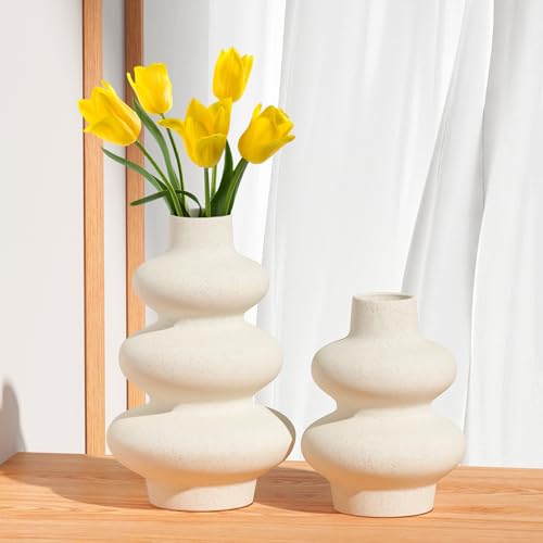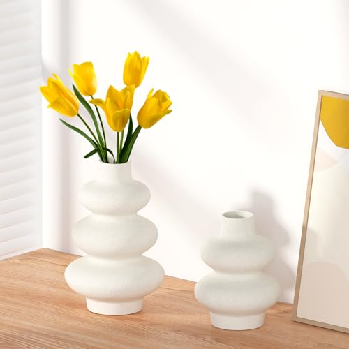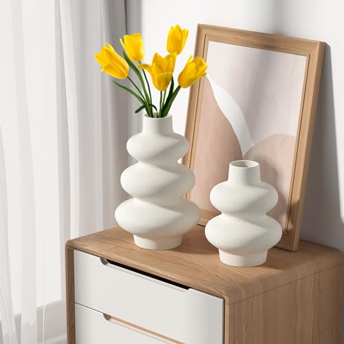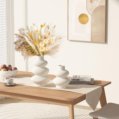 Zormon - مزهريات سيراميك بيضاء من زورمون لعشب البامباس، مزهرية بوهو غير لامعة من قطعتين للزهور، ديكور بنمط نورديك بسيط، مزهرية زهور عصرية لغرفة الطعام وغرفة المعيشة والمنزل وديكور المدخل