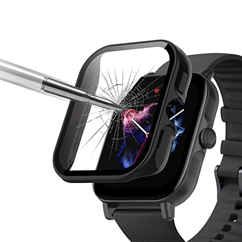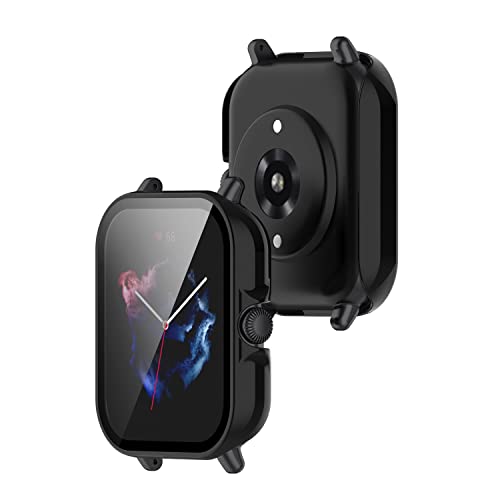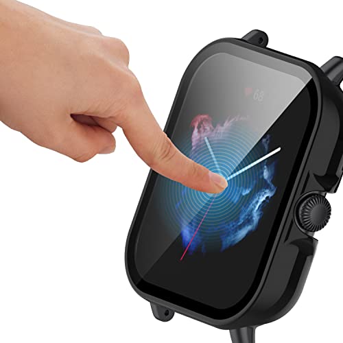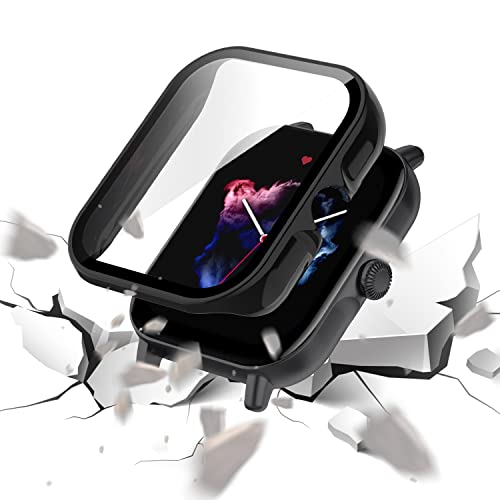 ZoRoll - جراب حماية بولي كربونات صلب مضاد للخدش مع شاشة من الزجاج المقوي HD عالية الدقة بالكامل لساعة امازفيت GTS 3 زورول - اسود