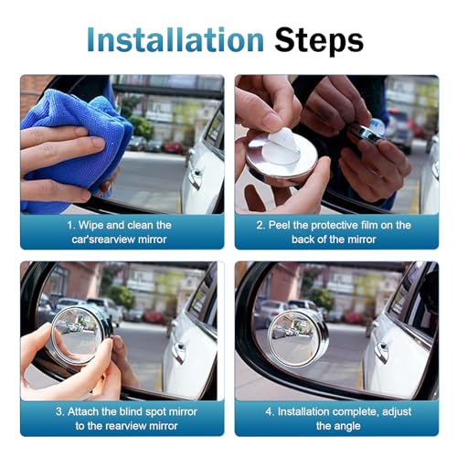 - سهلة التركيب: أولاً، نظف سطح مرآة الرؤية الخلفية لسيارتك. ثم انزع الجزء الخلفي اللاصق من مرآة النقطة العمياء واربطه بمرآة الرؤية الخلفية الداخلية. أخيرًا، اضبط الزاوية لإكمال التركيب.
