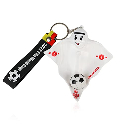 ZOZOIN - سلسلة مفاتيح لكاس العالم من زوزون بتصميم تميمة كرة القدم لقطر لعيب لطيفة وكرات هدايا مضيئة لدمية هدية كاس ابيض بولي فينيل كلوريد PVC