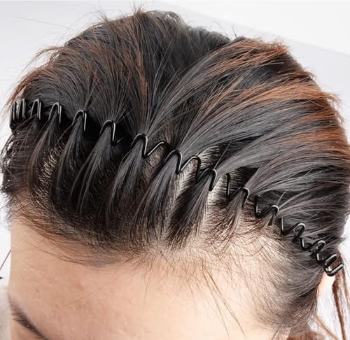 ZOZY - شريط راس معدني مموج للرجال والنساء من زوزي - تصميم مرن غير قابل للانزلاق من الستانلس ستيل، شريط شعر مموج اسود مريح للرياضة والجري والتصفيف والاستخدام اليومي وثبات طويل الامد