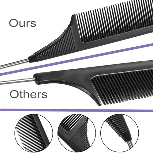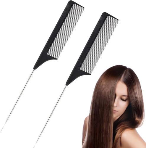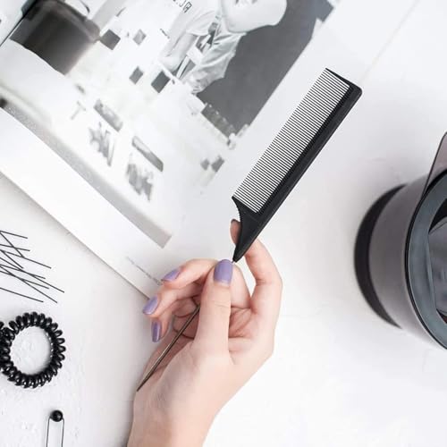 ZOZY - امشاط من زوزي مصنوعة من الكربون الاسود وتصفيفها، مقاومة للحرارة، امشاط من الستانلس ستيل لجميع انواع الشعر، قطعتين