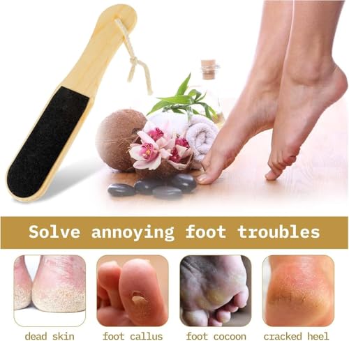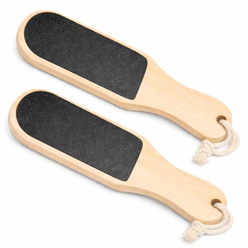 ZOZY - مبرد كعب بمقبض خشبي مزدوج الجوانب من زوزي، لإزالة الجلد الميت و مسامير القدم وعلاج الكعب المتشقق (قطعتان)