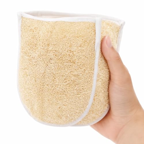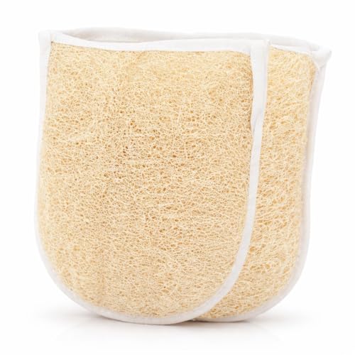 ZOZY - ليفة تقشير الظهر للاستحمام والاستحمام من زوزي، ليفة مربعة طبيعية مزدوجة الجوانب مع حزام يد، مقشر للجسم للتنظيف العميق وتدليك البشرة وبشرة صحية ناعمة (ابيض)