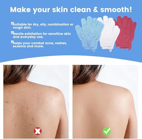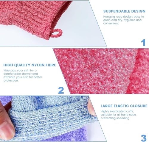 ZOZY - قفازات استحمام للتقشير من زوزي - قفازات حمام مزدوجة الجوانب من المايكروفايبر للعناية بالجسم، تنظيف لطيف وانعاش البشرة، متعددة الالوان