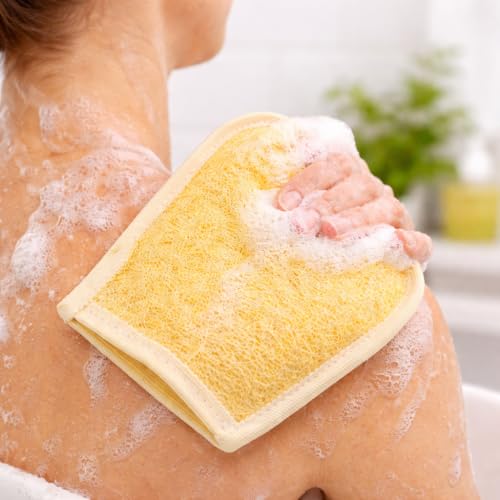 ZOZY - ليفة استحمام طبيعية، قفاز تدليك ناعم بوجهين لتقشير الجلد والتنظيف اللطيف والتنشيط والاسترخاء والعناية بالبشرة (قفاز ليفة استحمام مزدوجة) من زوزي