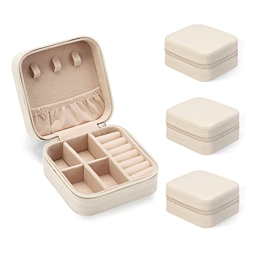 ZPROW - حافظة مجوهرات للسفر من زد برو، صناديق صغيرة محمولة للسفر، منظم مجوهرات صغير للخواتم والاقراط والقلادات والساعات والقلائد واحمر الشفاه (ابيض-3 عبوات)، من زي بي رو