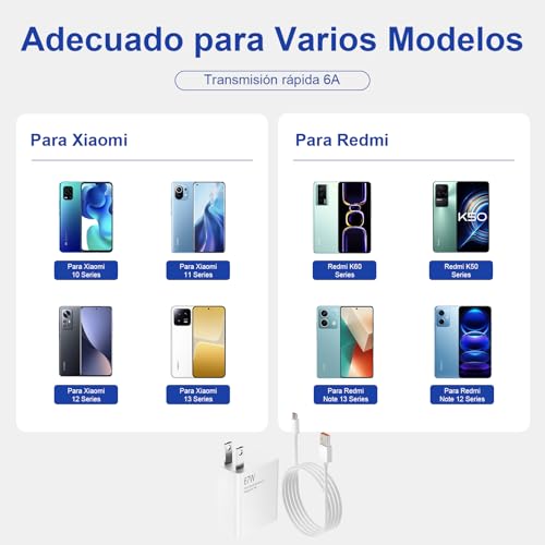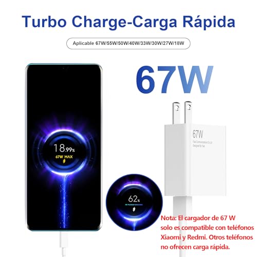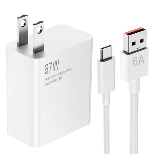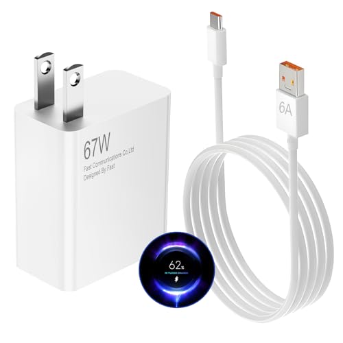 ZQSQD - شاحن سريع 67 وات لشاومي 14 13 12 11 10 14t 13t 12t 12s، لريدمي K60 K50 نوت 13 12 برو، شاحن تيربو سريع مع كابل USB إلى USB نوع C بطول 1.5 م 6 أمبير لشاومي X6 X5 X4 F4 وما إلى ذلك من ZQSQD