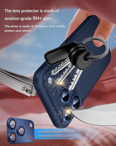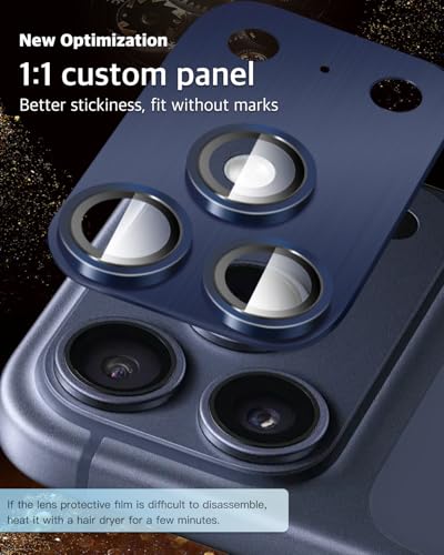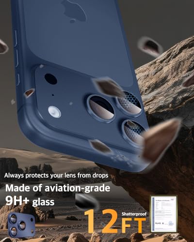 ZSAUTHREE - واقي عدسة الكاميرا لموبايل ايفون 17 برو ماكس من زد ساوثري، اطار معدني من الزجاج المقسى - مضاد للكسر، امتصاص قوي، مناسب للحافظة - ازرق داكن