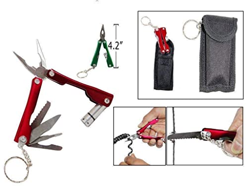 - تتميز حلقة المفاتيح متعددة الأدوات 9 في 1 بـ 9 وظائف لراحتك بما في ذلك كماشة الأنف بالإبرة وقاطع الأسلاك وفتاحة علب ومفك صليبة وسكينة بحافة مستقيمة وسكينة مشرشرة ومصباح يدوي ليد
