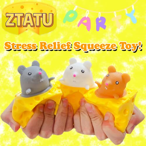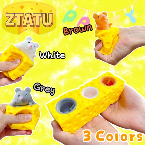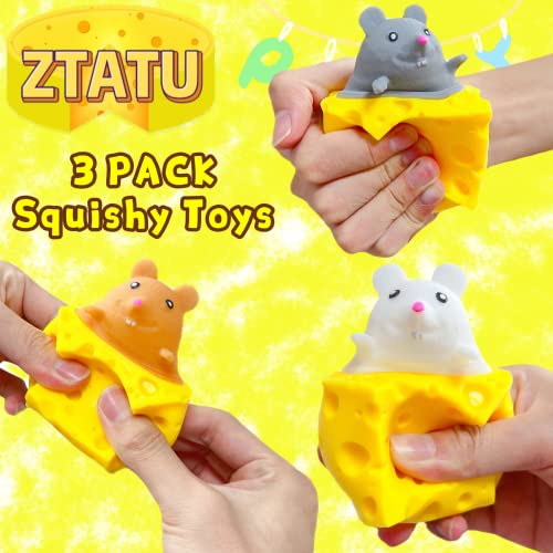 ZTATU - ألعاب ضغط إسفنجية على شكل مربعات الجبن، ألعاب حسية بتصميم فأر لتخفيف القلق والتوتر، كرة فقاعات للأطفال الأولاد والبنات والكبار من زتاتو، عبوة من 3 قطع