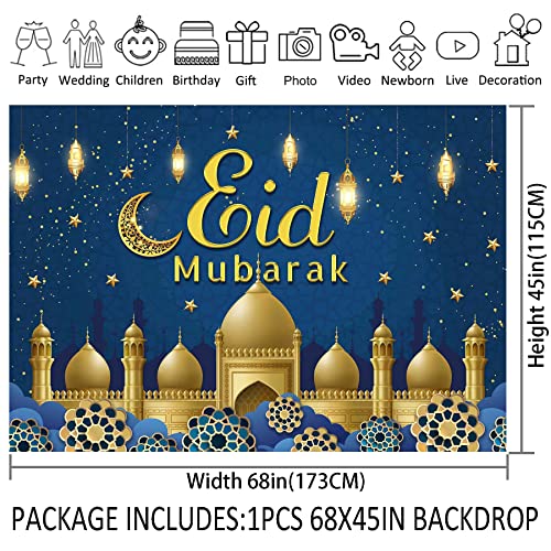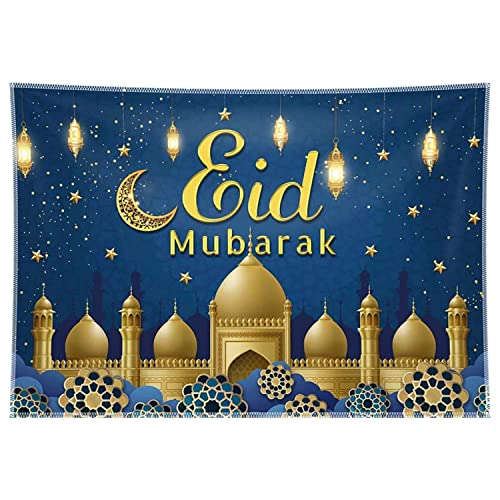 ZTHMOE - صورة خلفية من القماش مقاس 68×45 بوصة بتصميم عيد مبارك للمسلمين ورمضان وكريم، بتصميم قمر ونجوم لتزيين الحفلات والمهرجانات الاسلامية من زثموي