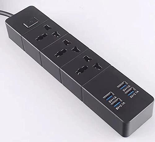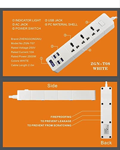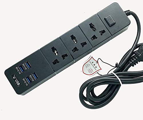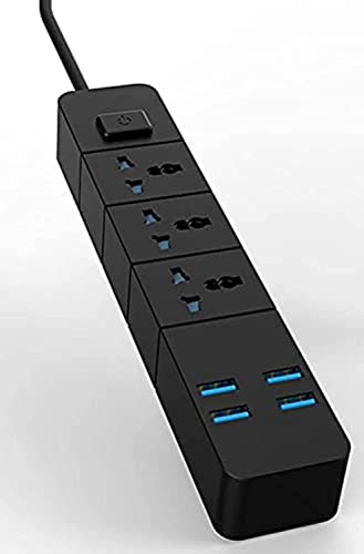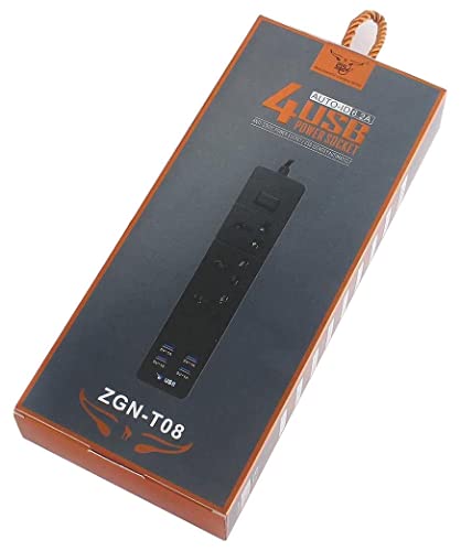ZTS - مشترك كهربائي يونيفرسال 6.2 امبير 3 منافذ و4 منفذ USB وكابل امريكي 2 متر من زد تي اس Zgn-T08 - اسود