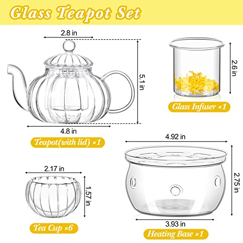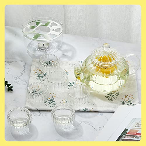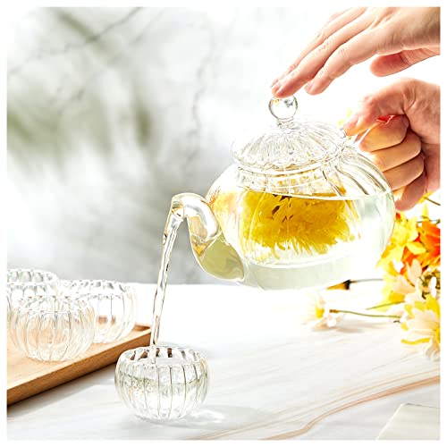 Zubebe - طقم براد شاي زجاجي يتضمن براد شاي وغلاية من الزجاج الشفاف مع مصفاة قابلة للازالة و6 اكواب قهوة مزدوجين الجدار، طقم شاي زهور هدية من زوبيبي، 27 اونصة