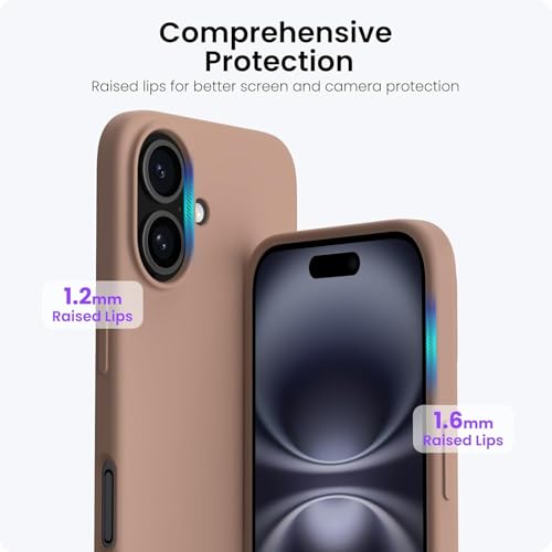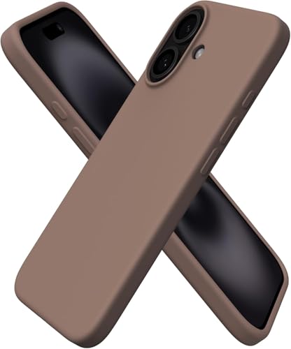 Zubitech - جراب حماية خلفي رفيع من السيليكون السائل الناعم لموبايل آيفون 16 بلس من زوبيتيك، جراب حماية مطاط مقاوم للصدمات بلمسة نهائية مطفية وبطانة ناعمة من المايكروفايبر (بني)