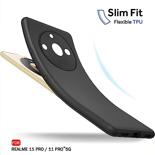- جراب حماية ناعم ومرن ورفيع من السيليكون والبولي يوريثين الحراري بلمسة نهائية مطفية مع حماية كاملة للكاميرا لموبايل اوبو ريلمي 11 برو/ريلمي 11 برو بلس 5G، لون أسود