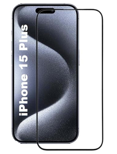 Zubitech - شاشة حماية من الزجاج المقوى بتصميم كامل من الحافة للحافة لموبايل آيفون 15 بلس من زوبيتيك، بدرجة صلابة 9H، عالية الدقة ومقاومة للخدش والبصمات (ايفون 15 بلس، شفافة)