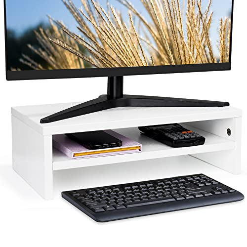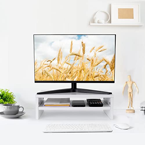Zucabape - حامل شاشة من زوكابيب، حامل شاشة كمبيوتر خشبي، حامل مكتبي بطبقتين مقاس 42 سم، منظم تخزين مكتبي متعدد الوظائف للاب توب والطابعة والكمبيوتر والنوت بوك والكيبورد والمكتب المنزلي