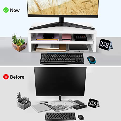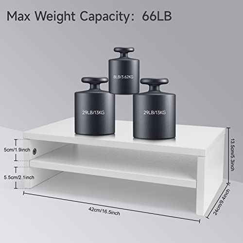 - ❤حامل شاشة من طبقتين: مع تصميم مزدوج الطبقات، يستخدم حامل الشاشة الأبيض هذا مساحة أقل لتخزين المزيد من الأشياء، مما يجعل مكتبك أنيقًا.