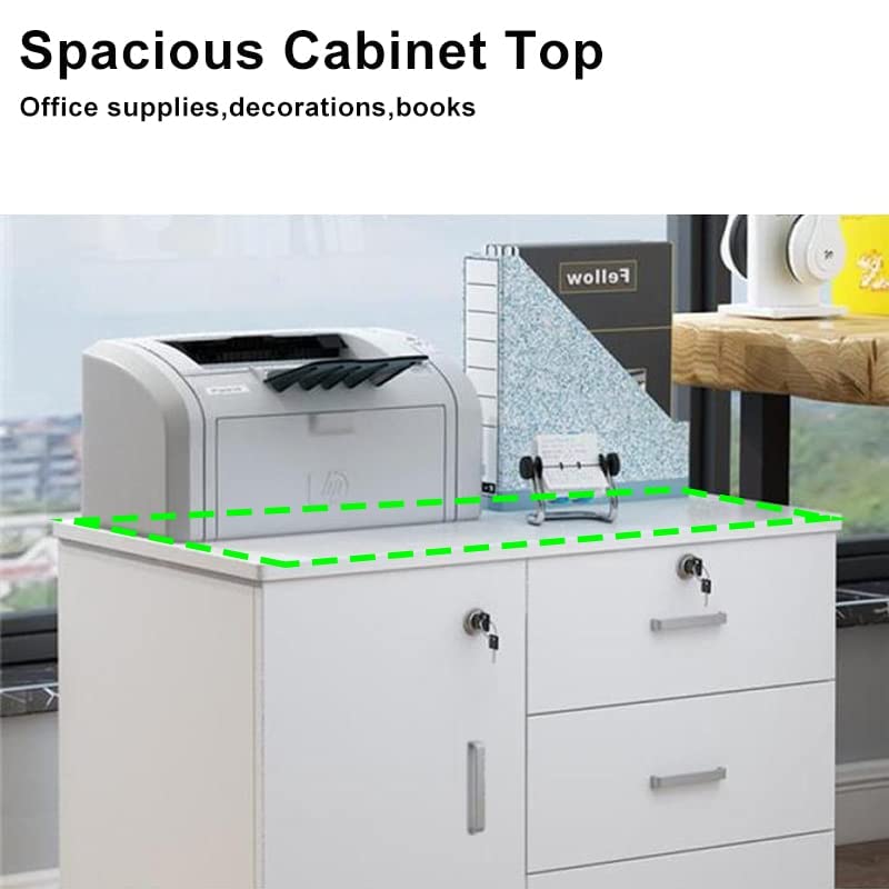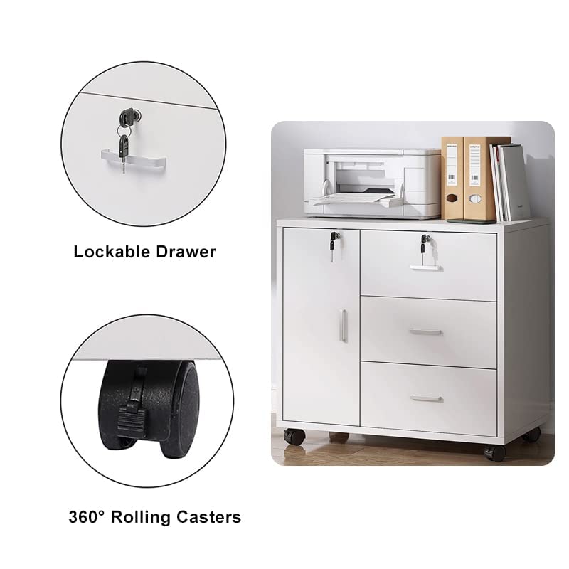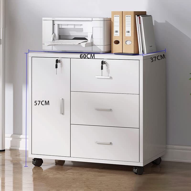 ZUIHAO - وحدة أدراج متنقلة ب3 أدراج وباب واحد، دولاب منظم ملفات دوار مع قفل للمكتب المنزلي، مع درج لتخزين الطابعة، يناسب مجلدات ملفات ايه 4، أبيض من زويهاو