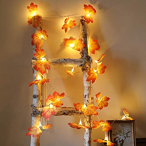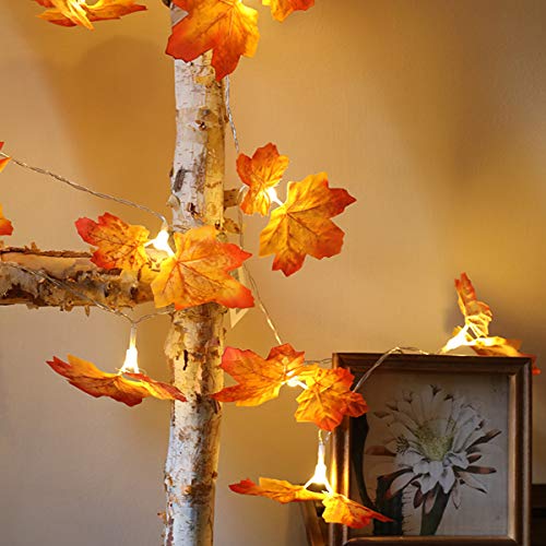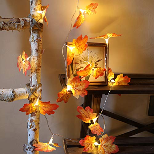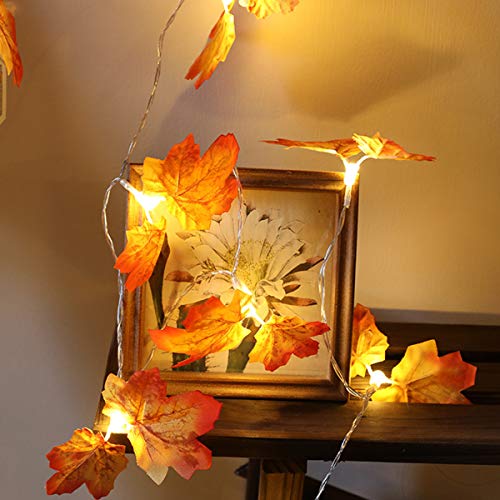 Zunbo - مجموعة أضواء LED معلقة بتصميم أوراق القيقب واللبلاب الخضراء والوردية لتزيين المنزل وحفلات الزفاف والحديقة والفناء مع سلسلة شفافة من زونبو، طول 2 متر - 20 لمبة، برتقالي
