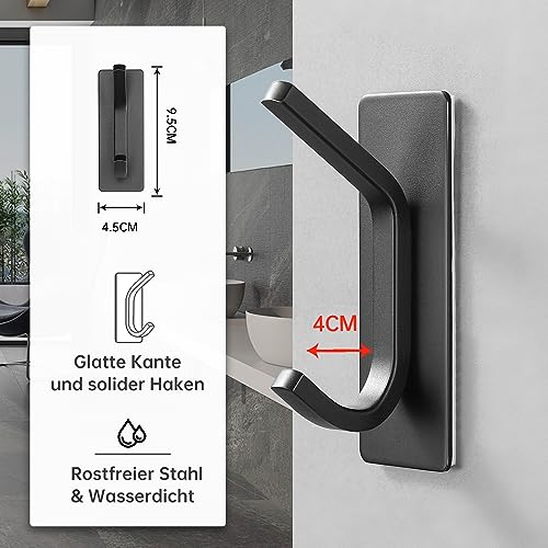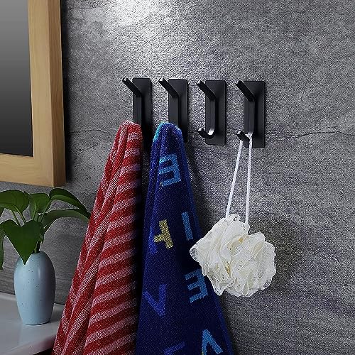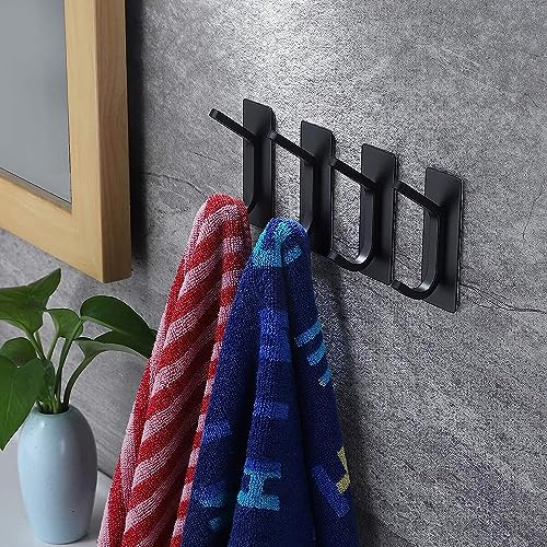 ZUNTO - مجموعة من 4 خطافات تعليق فوط ذاتية اللصق لا تحتاج إلى ثقب من زونتو، خطافات ملابس من الستانلس ستيل باللون الأسود للحمام والمطبخ، خطافات حائط مقاومة للماء، الحد الأقصى للوزن الموصى به: 10.0 كيلوجرام