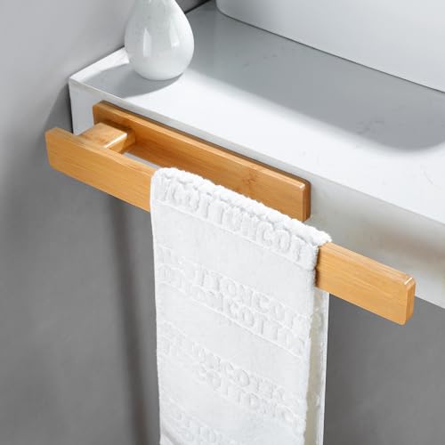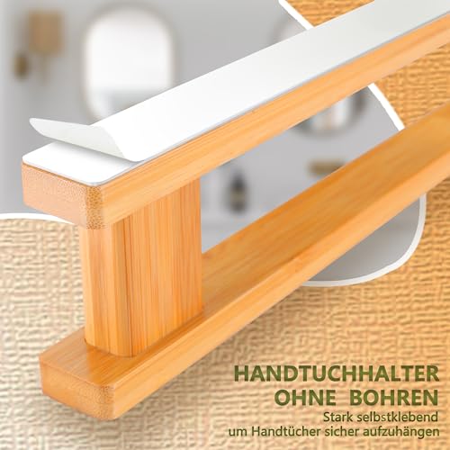 ZUNTO - حامل فوط من خشب الخيزران يثبت بدون حفر على الحائط للحمام والمطبخ من زونتو