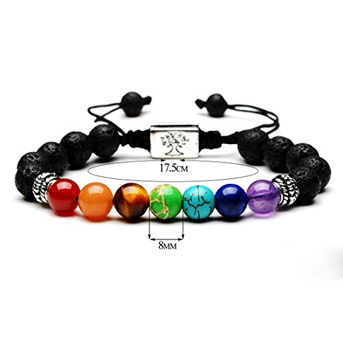Zuo Bao - سوار يوجا باحجار طاقة الشاكرا ال7 من الحجر الطبيعي وحبل مضفر زوو باو 8 ملم للاستشفاء باليوجا للنساء