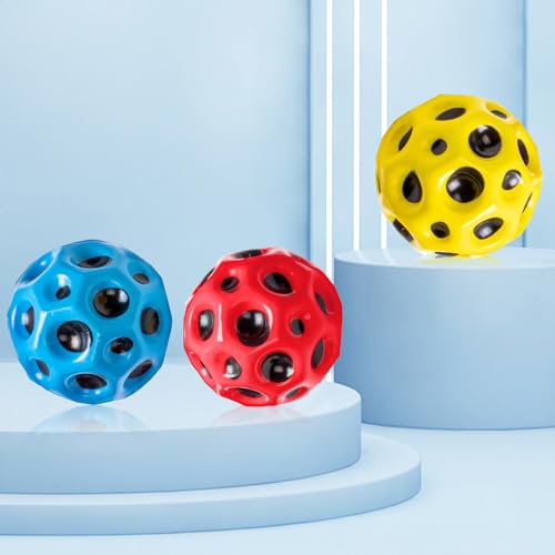 ZUOQIANG - كرة نطاطة على شكل قمر للأطفال مثالية لتخفيف التوتر وهدايا حفلات أعياد الميلاد من زواشيانج (لون أحمر + أزرق + أصفر) 3 قطع