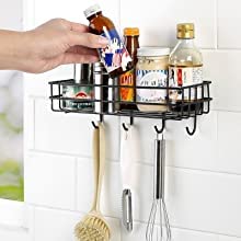 - ❖【 ذاتي اللصق】: - منظم رف حمام ذاتي اللصق. تركيب سريع في دقيقة واحدة. تأتي منظمات الحمام الخاصة بنا مع ملصق سحري قوي ذاتي اللصق. لا حاجة لأي أدوات أو أدوات إضافية للتركيب