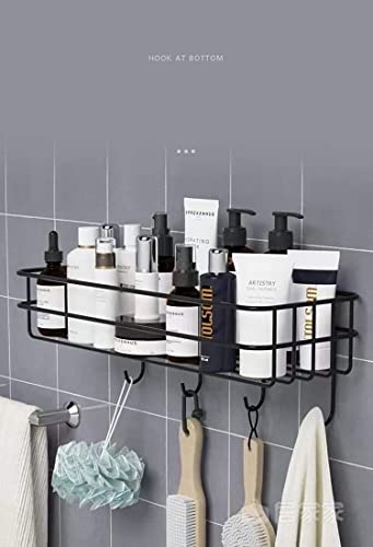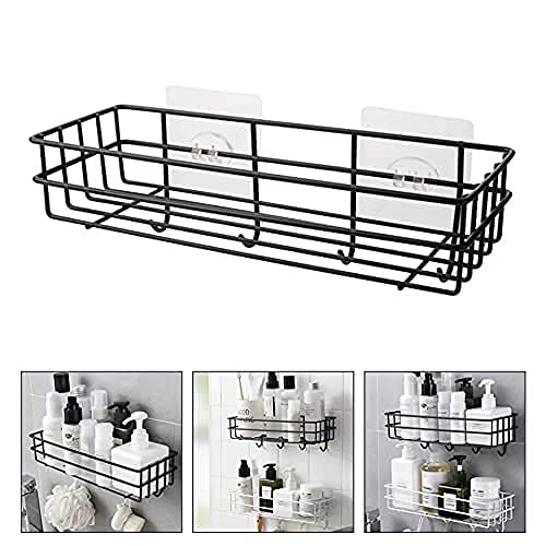 ZURATO - زوراتو رف حمام ذاتي اللصق - تخزين متعدد الاغراض للمطبخ مع 4 خطافات - معدني لاصق - عبوة من قطعة واحدة AV218 بلاستيك الألوان، متعدد الألوان