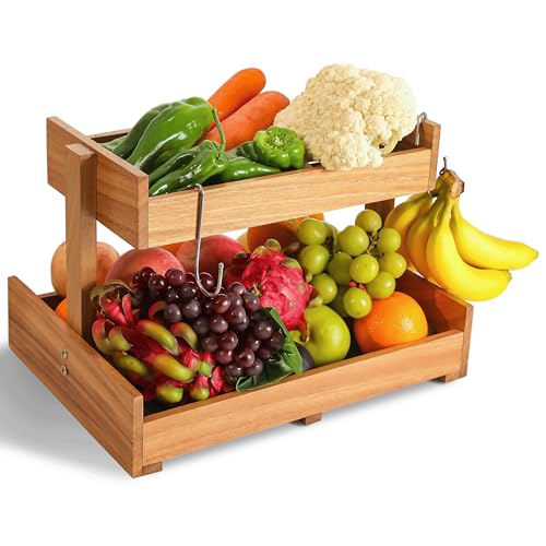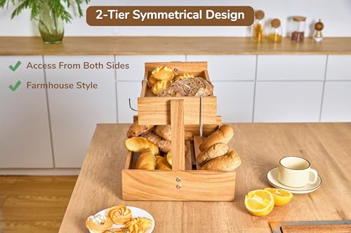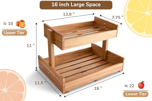 Zurklulu - سلة فاكهة من خشب الاكاسيا بطبقتين من زوركلولو - وعاء فاكهة 40 سم ومنظم لطاولة المطبخ، تصميم متماثل بسيط، مثالية لتخزين الخبز والفواكه والخضروات والوجبات الخفيفة