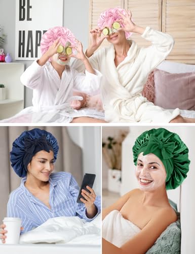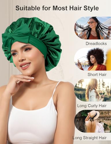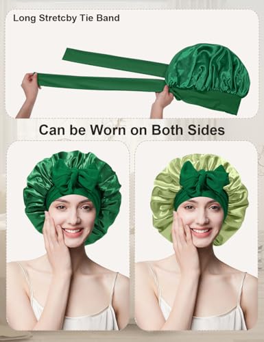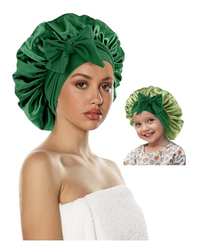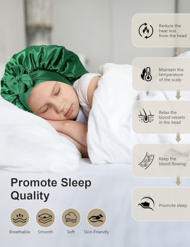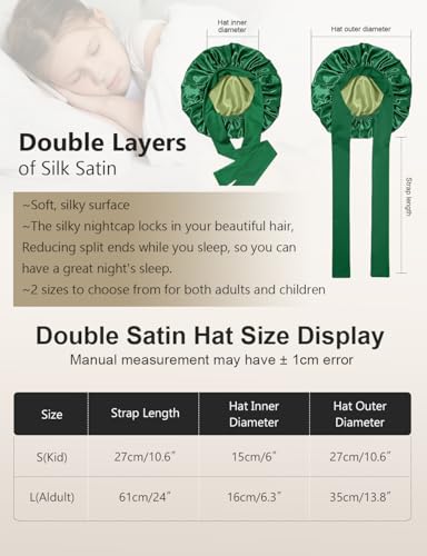 ZURLEFY - بونيه ساتان للنساء النائمات L والاطفال S شعر حريري مزدوج الطبقات مع ربطة عنق للبنات والاولاد قبعة مجعد