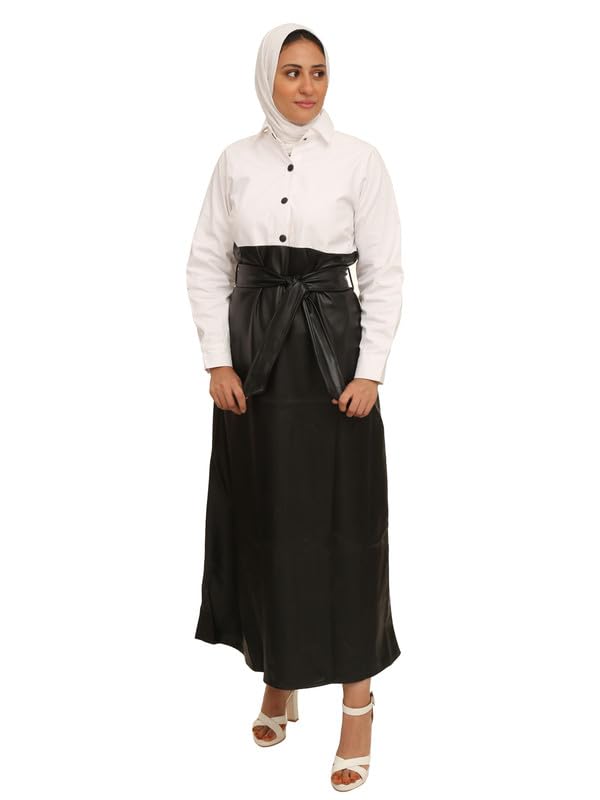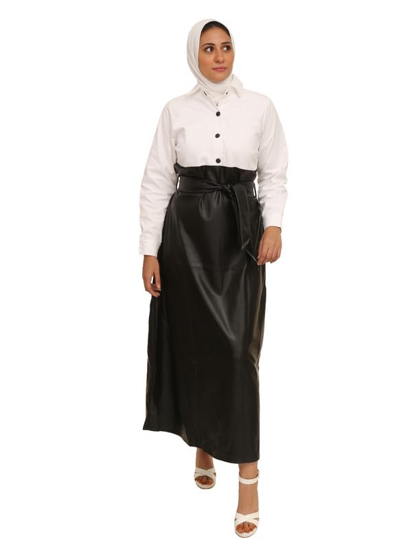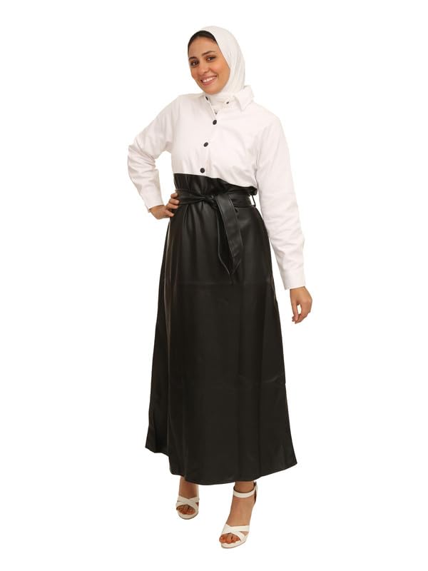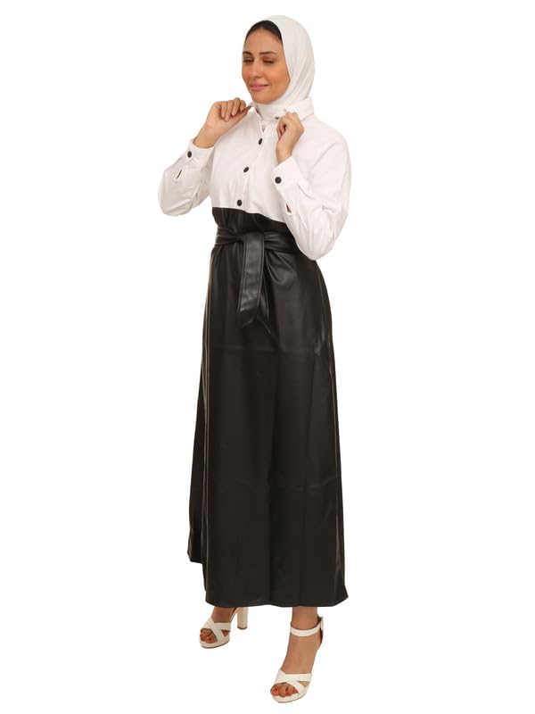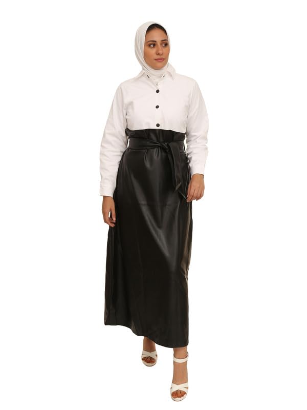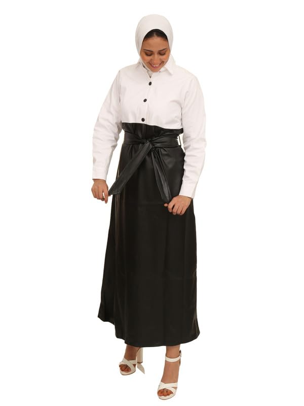 ZUYA - فستان جلد طويل نسائي من ZUYA - ابيض واسود