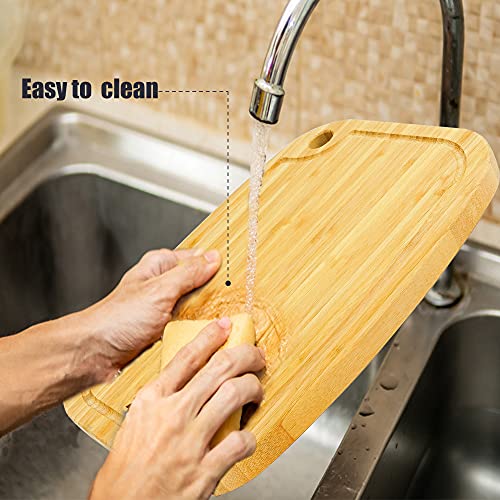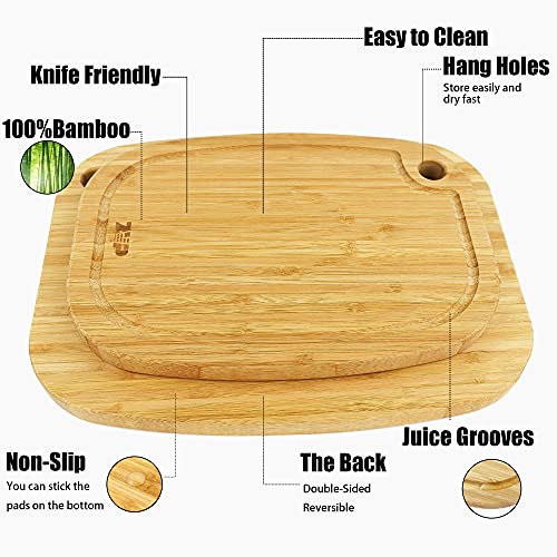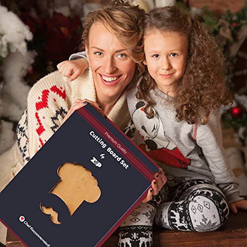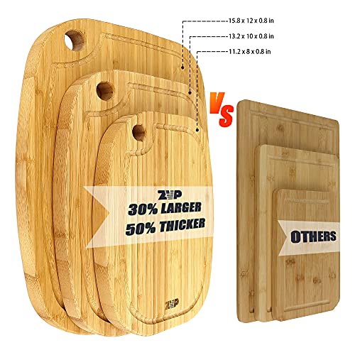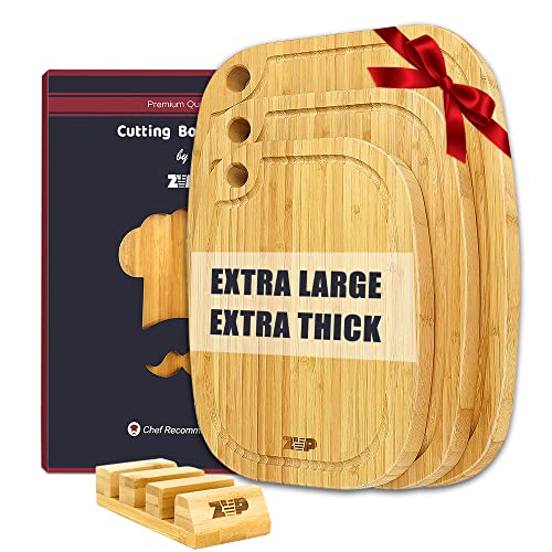 ZVP - زد في بي لوح تقطيع من الخيزران سميك للغاية للمطبخ من 4 قطع، مجموعة الواح تقطيع خشبية كبيرة للغاية مع اخاديد للعصير، حامل تخزين، للجبن واللحوم والخضروات، لون طبيعي