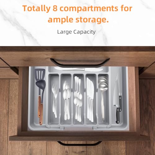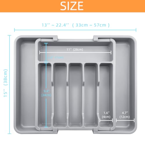 ZWANG - منظم أدراج ادوات المائدة الفضية من زوانج - منظم درج المطبخ قابل للتوسيع، صينية أدوات المطبخ قابلة للتعديل من 33 الى 57 سم، صينية أواني المائدة للملاعق وملعقة سباتولا والشوك