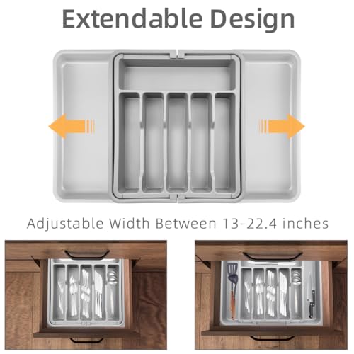 - 【مقاس قابل للتعديل】يبلغ طول منظم الأدوات الفضية 15.8 انش وارتفاعه 1.8 انش، ويمكن أن يتمدد من 13 انش إلى 23.6 انش في العرض. يمكن أيضًا تحويل الصينية القابلة للفصل إلى 3 قطع. هذا الحجم المناسب يناسب معظم أدراج المطبخ. ملاحظة: يرجى قياس درجك قبل الشراء.