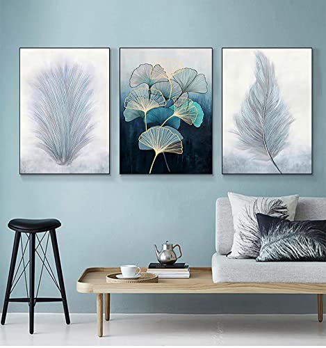 zxianc - تابلوه كانفس لديكور الحائط بتصميم تجريدي لنباتات وريش وورق شجر من زكسيانك فني اسكندنافي غرفة المعيشة والمنزل مقاس 65 سم × 85 3 مع اطار