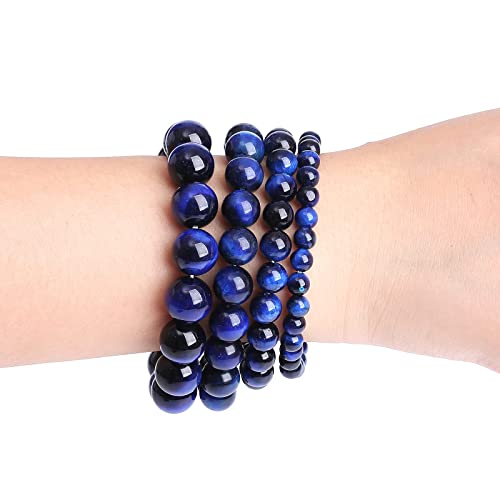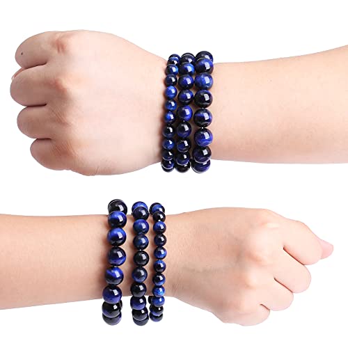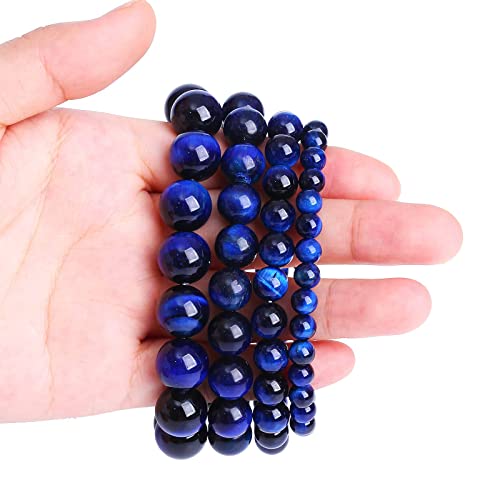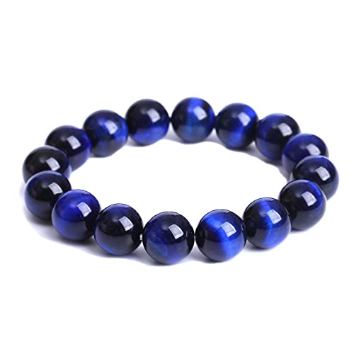 Generic - سوار بخرز حجر عين نمر ازرق طبيعي دائري مع حبل مرن للرجال والنساء، 12 ملم, 6mm, حجر, عين النمر