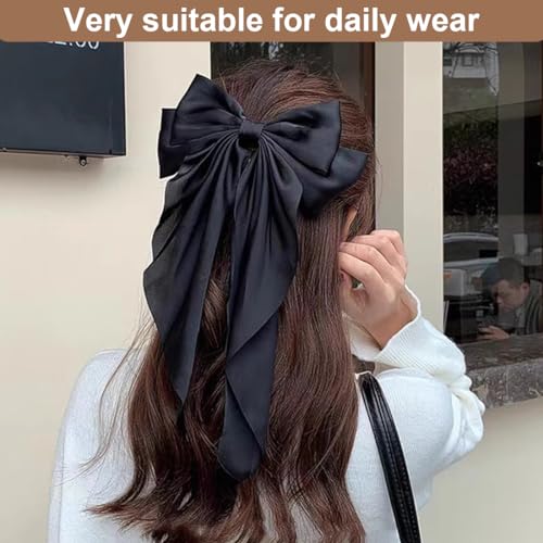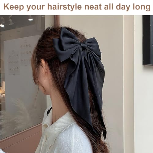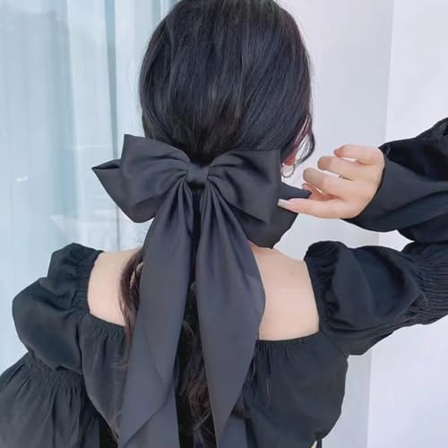 ZYBHMJE - مشبك شعر على شكل فيونكة كبيرة، مشبك شعر بشريط من الساتان الفرنسي للنساء والبنات من ZYBHMJE، لون أسود (قطعة واحدة)