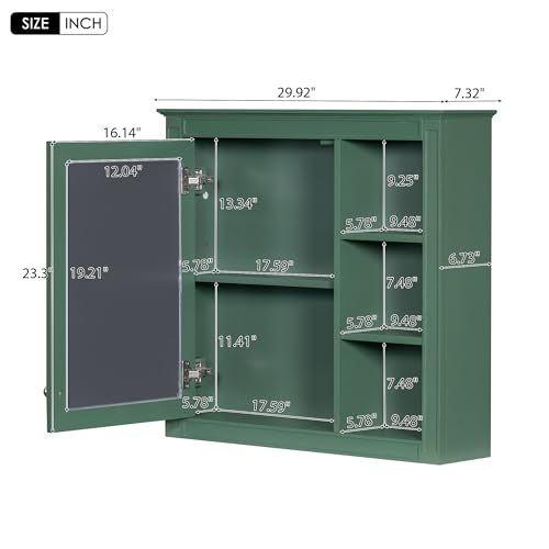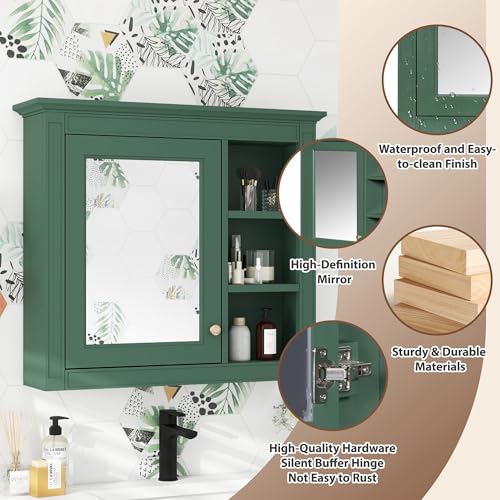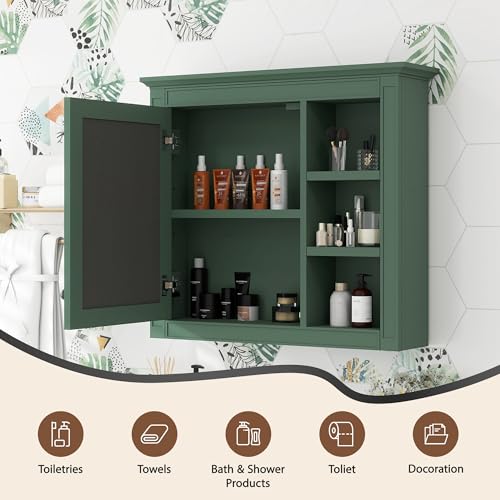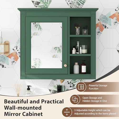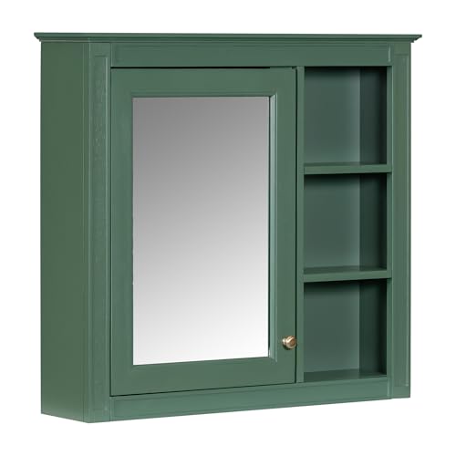 Zyerch - دولاب حمام بمراية مثبت على الحائط، دولاب جداري مخصص للأدوية، مزود بباب واحد و3 أرفف مفتوحة من زايريك، لون أخضر، مقاس 76 × 71 سم