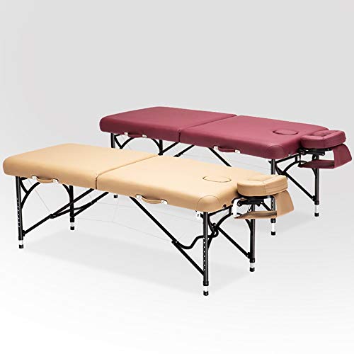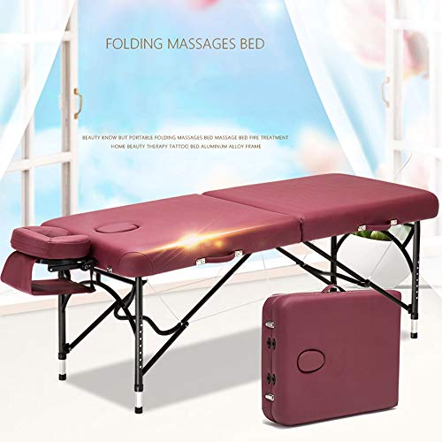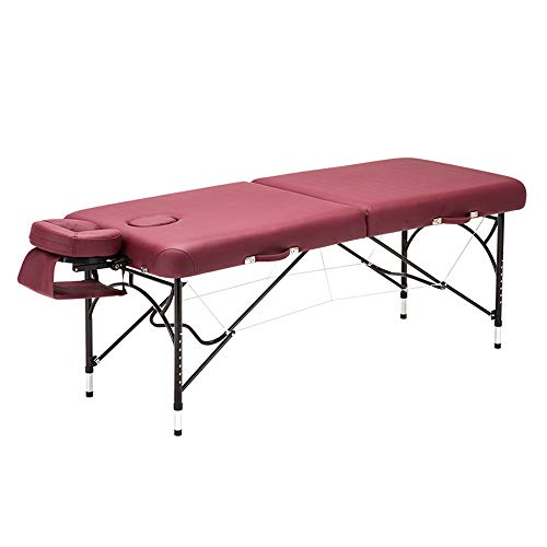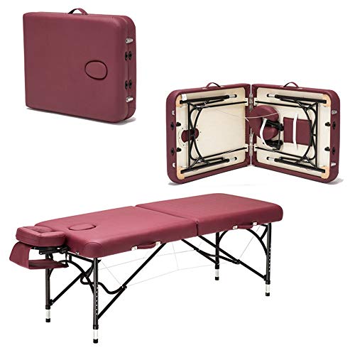 ZYF - سرير تدليك محمول قابل للطي للمنزل للعلاج الطبيعي مع اطار من الالومنيوم وارجل اللون: احمر نبيذي
