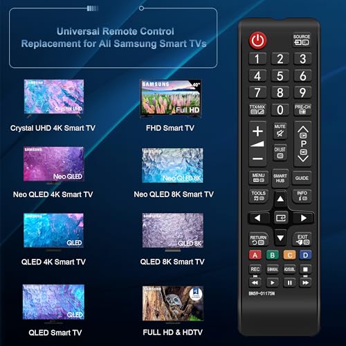 - 【التوافق الدقيق】يعمل جهاز التحكم عن بعد البديل بالأشعة تحت الحمراء هذا مع جميع تلفزيونات سامسونج الذكية، LED، LCD، HDTV، UHD، QLED، ثلاثي الأبعاد، 4K HDR، متوافق مع جميع تلفزيونات سلسلة سامسونج. نقدم لك تفاصيل أصلية بنفس التفاصيل التي أعلناها. متوافق مع جميع أجهزة تلفزيون سامسونج بما في ذلك 2024 و2023 و2022 و2021 و2020 و2019 و2018 و2017