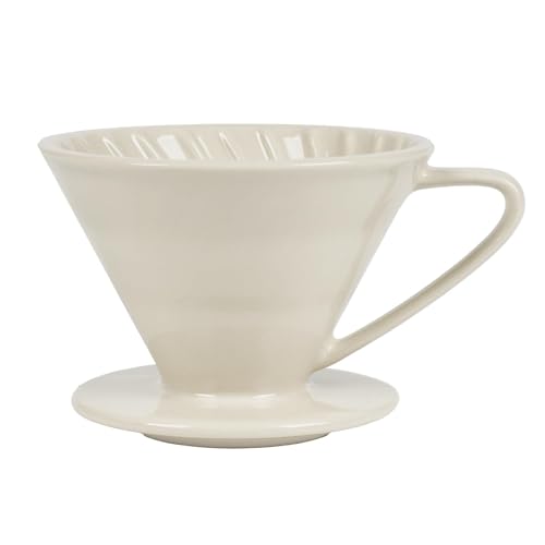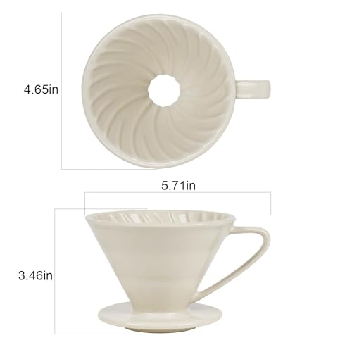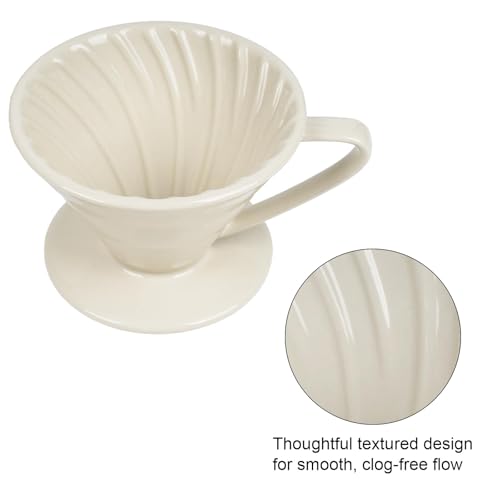 ZYNOXITY - منقط قهوة V60 من زينوكسيتي، نظام تحضير يدوي من السيراميك، تصميم كوب واحد، ملحق فلتر بورسلين مقاس 02، ابيض