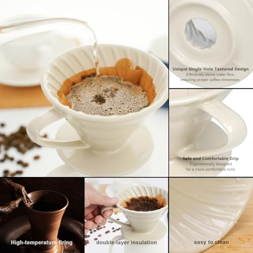 - تخمير سيراميك فاخر: استمتع بنكهات القهوة النقية غير الملوثة مع منقط السيراميك الفاخر. مقاوم للحرارة ومتين بشكل لا يصدق، يحافظ على روائح القهوة الرقيقة بعد الشراب، يدوم لسنوات دون تقطيع أو تشقق.