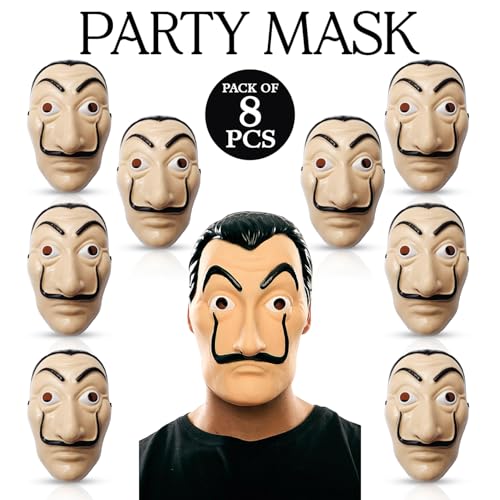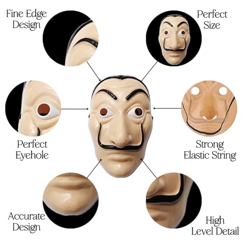 ZYOZIQUE - قناع وجه بنمط شخصية سلفادور دالي موني مستوحاة من مسلسل "لا كاسا" للحفلات التنكرية والحفلات للأطفال والبالغين من زيوزيك®
