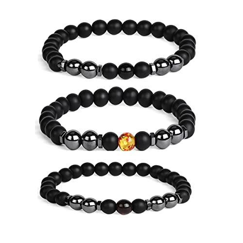 ZZ ZINFANDEL - سوار مغناطيسي مضاد للتورم والقلق قابل للتعديل للتصريف اللمفاوي من الزجاج البركاني الاسود للنساء والرجال (3 قطع)