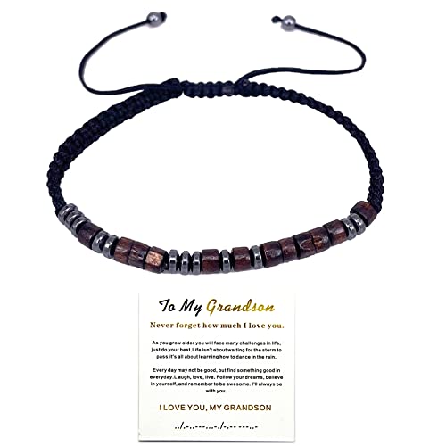 ZZ ZINFANDEL - سوار خرز مرتب بعبارات «To My Son» و»To Grandson» و»I Love You» بطريقة شفرة مورس مضفر يدويا قابل للتعديل للمعصم مغناطيسي ملهم هدية للرجال العقيق