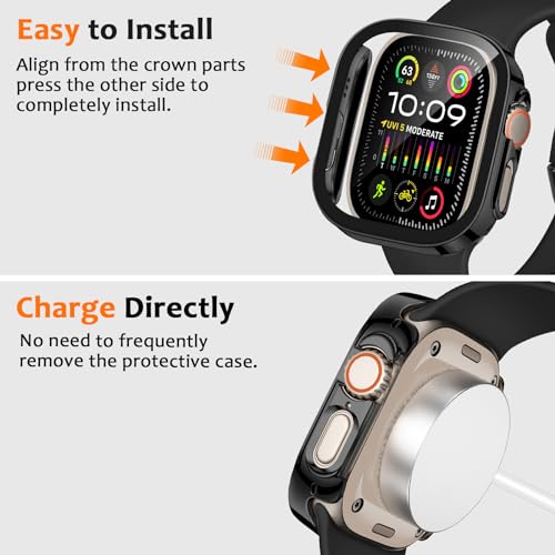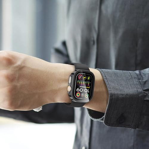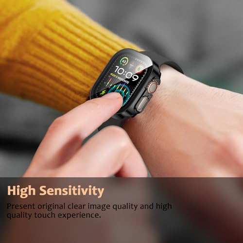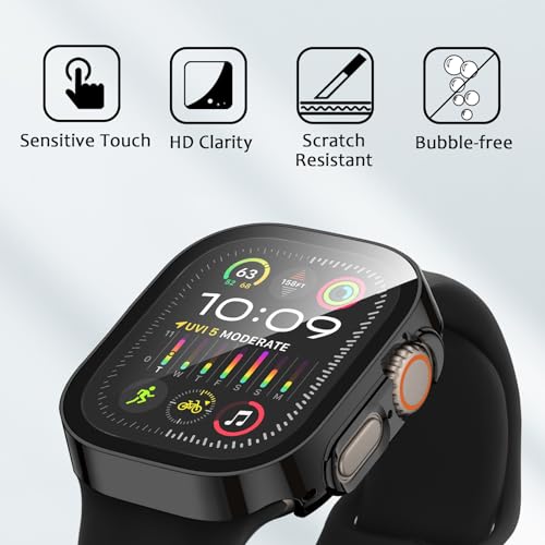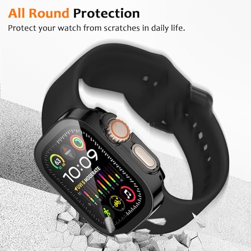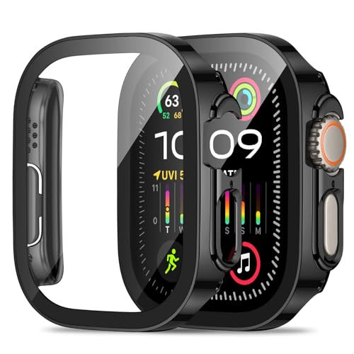 ZZDZZ - جراب حماية صلب من البولي كربونات مع شاشة حماية من الزجاج المقوى بتصميم رفيع للغاية بحافة مستقيمة متوافق مع ساعة آبل اي ووتش 49 ملم الترا 2 والترا من ZZDZZ - قطعتان بلون أسود